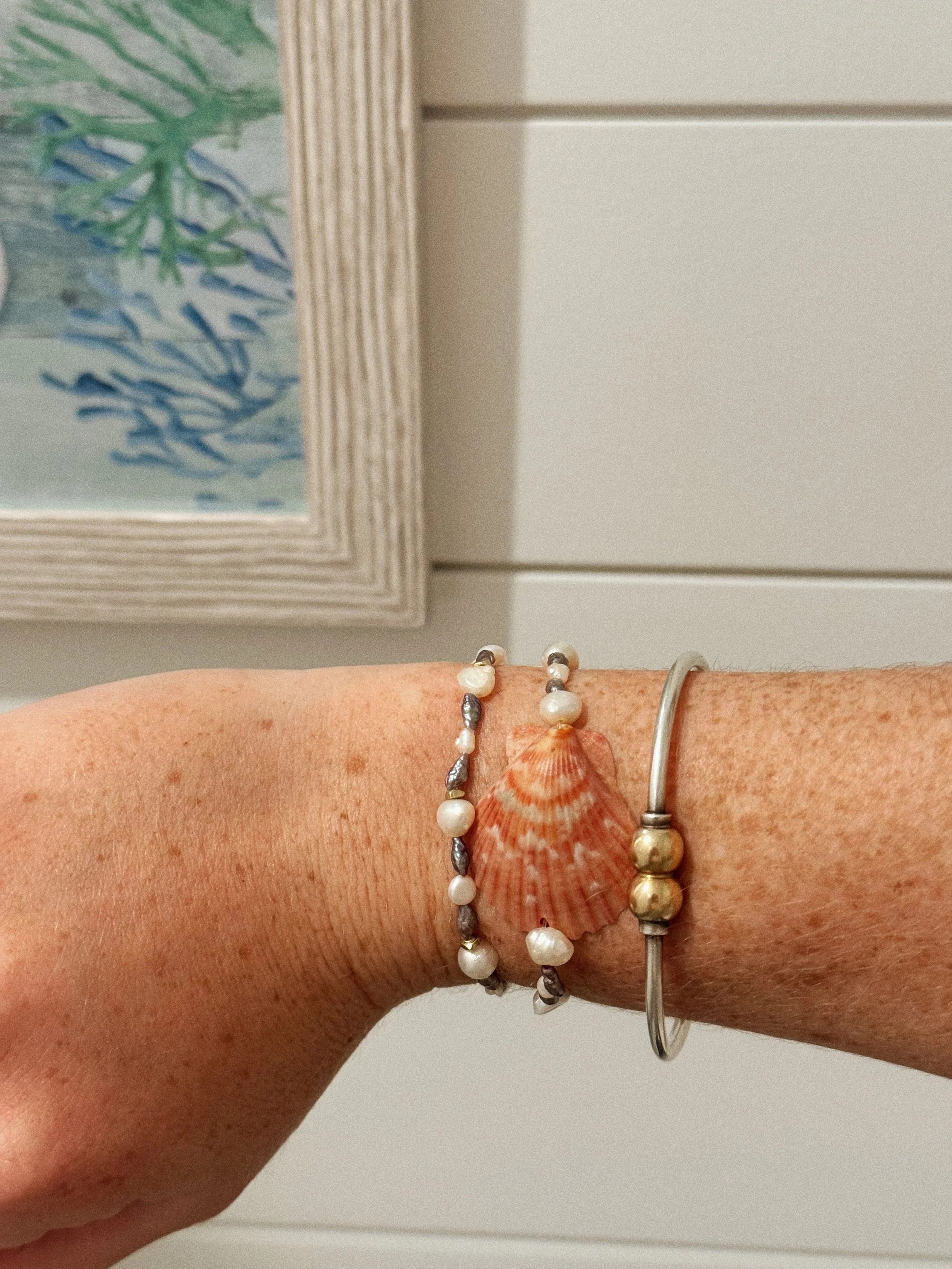 Categories: All Handmade Bracelet Stacks Handmade Necklaces Handmade Earrings Handmade Sets Shop All | Handmade Bracelet Stacks | Handmade Necklaces | Handmade Earrings | Handmade Sets | Small Single Pearl Shell Earrings $25.00 Scallop Shell Bracelete Stack $15.00 Scallop Shell Earring Studs with Small Pearl $25.00 Scallop Shell Necklace with Colorful Pearl Beads $30.00 Scallop Shell Necklace Small Pearls $30.00 Translucent Shell Earrings $25.00 Rare Find Shell Earrings $25.00 Reverse Double Stacked Mini Scallop Shell Earrings $25.00 Double Stacked Mini Scallop Shell Earrings with Beads $25.00 Single Scallop Shell with Beads $25.00 Recycled Shell Piece Dangly Earrings $25.00 Kitten Paw Earrings $25.00 Mini Scallop Shell with Bead $25.00 Chunky Hoop Earrings $25.00 Large Scallop Shell Necklace $30.00